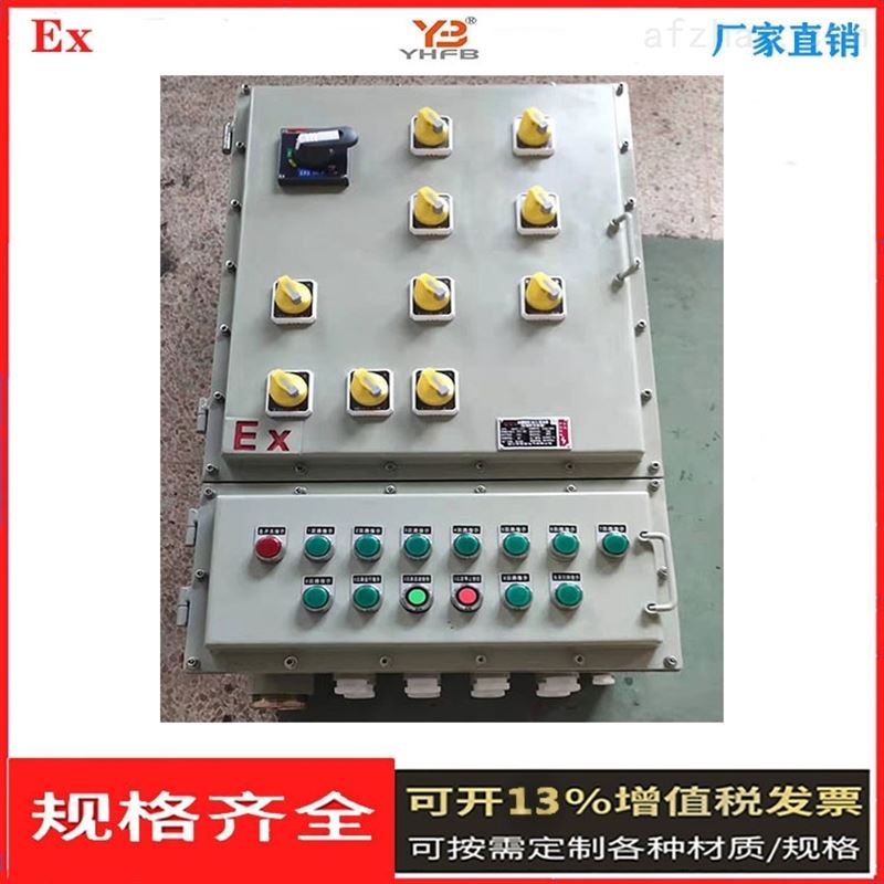 A、外殼采用鑄鋁合金壓鑄成型,表面噴塑。主腔采用隔爆型結(jié)構(gòu),接線腔增安型結(jié)構(gòu)。內(nèi)可選配裝斷路器、交流接觸器、熱繼電器、Ex防爆控制按鈕、Ex防爆信號燈等。配電箱采用模塊化設(shè)計,各種回路可以自由組合,電器元件選型可由用戶而定,其結(jié)構(gòu)緊湊、外形美觀。進出線采用鋼管或電纜布線均可,進出線口方向可由用戶要求而定。