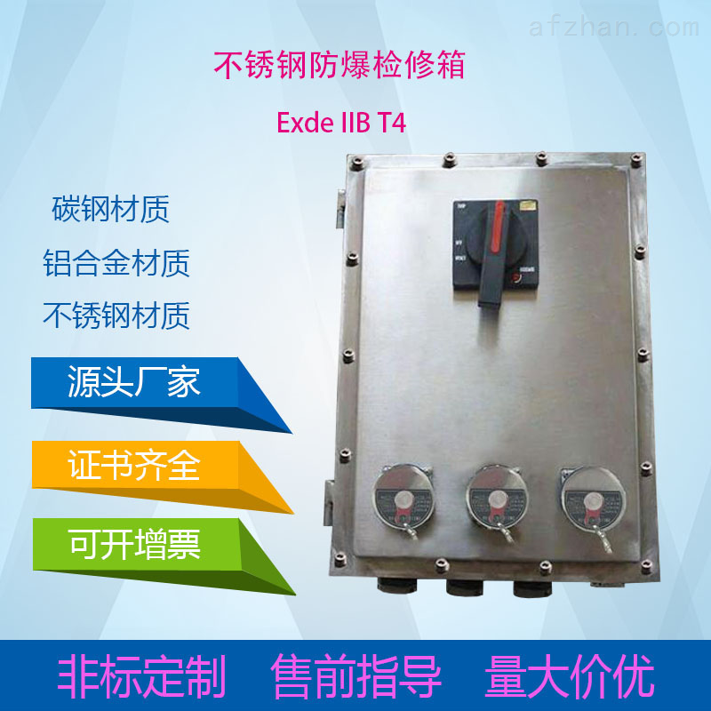 防爆箱屬于非標產(chǎn)品,定制類的防爆箱生產(chǎn)時一般以客戶圖紙為準,所以價格差別較大,網(wǎng)上價格僅用于推廣,不作為最終成交價格,切勿不經(jīng)溝通直接下單,請需要定制的客戶拍前咨詢客服。本公司所售防爆配電箱,有鋁合金壓鑄、鋼板焊接、不銹鋼及工程塑料等材質(zhì),鑄鋁合金:鋁合金是在工業(yè)中使用非常廣泛的有色金屬材料,隨著工業(yè)經(jīng)濟的快速發(fā)展,對鋁合金構(gòu)件的需求日益增多,使對合金的焊接性研究也隨之深入,鋁合金構(gòu)件是目前使用最多的構(gòu)件,在防爆行業(yè)中,鑄鋁合金材質(zhì)的防爆設備得到了眾多企業(yè)的喜愛。,防水能力可以達到任何方向濺水和噴水均無有害影響,工作環(huán)境中允許的溫度高達85攝氏度。,帶總開關時,具有過載,短路等保護功能。,不同用途的電纜應分開敷設。鋼管配線應使用專用渡鋅鋼管或使用處理過內(nèi)壁毛刺且做過內(nèi)、外壁防腐處理的水管或煤氣管。,本產(chǎn)品為復合型防爆結(jié)構(gòu),開關箱采用隔爆型結(jié)構(gòu),母線箱及接線箱采用增安型結(jié)構(gòu); ,裝配電氣部件前按要求進行打壓試驗,加壓1MP,保持10-12S。應保證箱體無明顯變形,無泄漏。,裝配完成后清潔箱體表面,使用發(fā)泡塑料適度包裝,避免運輸及安裝過程破壞箱體結(jié)構(gòu)及表面噴涂層。,所有緊固件均采用抗強腐蝕的304不銹鋼材質(zhì);
