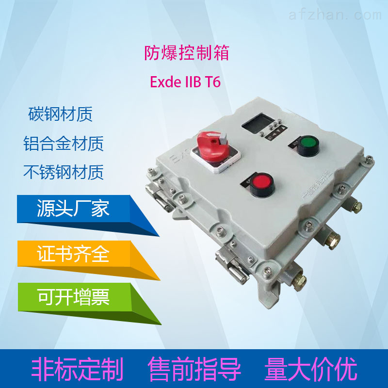 鑄鋁合金:鋁合金是在工業(yè)中使用非常廣泛的有色金屬材料,隨著工業(yè)經(jīng)濟(jì)的快速發(fā)展,對鋁合金構(gòu)件的需求日益增多,使對合金的焊接性研究也隨之深入,鋁合金構(gòu)件是目前使用最多的構(gòu)件,在防爆行業(yè)中,鑄鋁合金材質(zhì)的防爆設(shè)備得到了眾多企業(yè)的喜愛。,防塵能力可以使進(jìn)入設(shè)備的微量塵埃不影響設(shè)備的正常運(yùn)行,,可手動調(diào)節(jié)頻率。可設(shè)定轉(zhuǎn)速按時(shí)間變化的工藝曲線。也可由DCS系統(tǒng)給出信號來控制其頻率。,2區(qū):在正常運(yùn)行時(shí)不可能出現(xiàn)爆炸性氣體混合物的環(huán)境或即使出現(xiàn)也僅是短時(shí)存在的爆炸性氣體混合物的環(huán)境,產(chǎn)生爆炸必須同時(shí)存在以下三個條件:存在易*氣體、易燃液體的蒸氣或薄霧;上述物質(zhì)與空氣混合,其濃度在爆炸極限以內(nèi);存在足以點(diǎn)燃爆炸性混合物的火花、電弧或高溫,在無破壞金屬和絕緣的腐蝕性氣體或蒸氣的地方;,引入引出方向:上進(jìn)上出,下進(jìn)下出(可按客戶要求不受限制),控制開關(guān)有多種規(guī)格可以選用,信號燈有紅、綠、黃、白等四種,儀表可任意選配電流表,電壓表,溫控儀,轉(zhuǎn)速表等。進(jìn)出線靈活多變,可根據(jù)用戶要求任意選擇,可實(shí)現(xiàn)就地操作和遠(yuǎn)距離控制。可根據(jù)用戶要求特制,箱蓋緊固后應(yīng)使用塞規(guī)檢查隔爆縫隙,縫隙小于0.1mm。,螺釘和螺母緊固時(shí),嚴(yán)禁打擊或使用不合適的旋具和扳手。